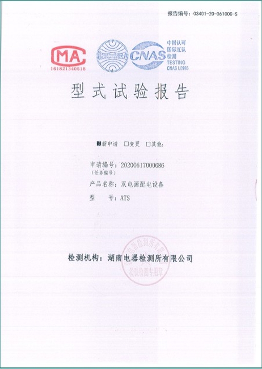 ATS1600A雙電源配電設(shè)備型式試驗報告